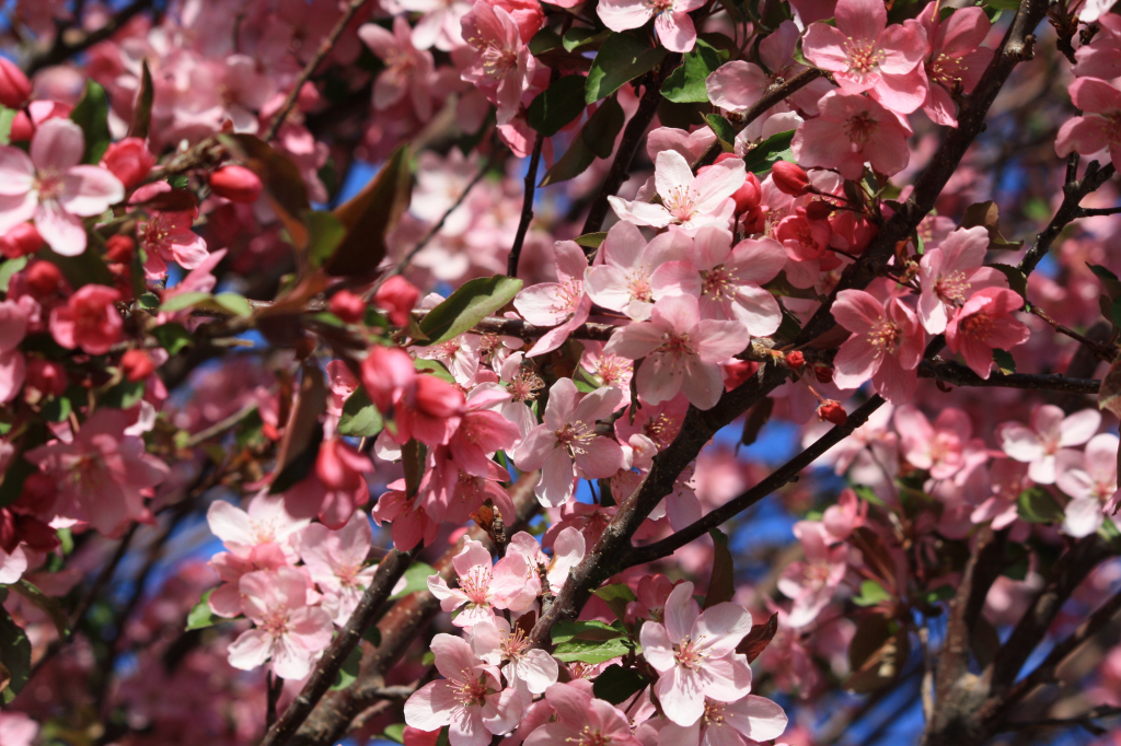 I was driving down the street when I noticed the bare branches of a row of trees. “Those will soon be filled with pink blooms,” I thought.