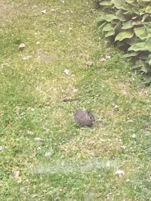 I have a long standing tradition of having a baby cottontail rabbit born in my yard each summer. Last night, this year’s baby made herself visible for the first time. She’s the 8th generation bunny.
