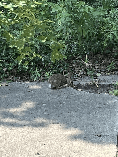 This is Thelma, my baby yard-bunny, and this was the first thing I saw upon walking outside my house. Then she hopped over to the driveway.
