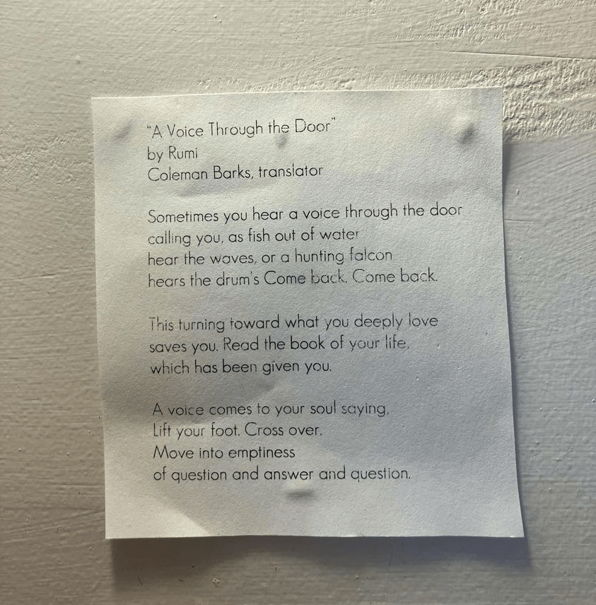 I recently found this poem hanging on a wall. I thought I’d share it today. May it speak to us in whatever way it needs to speak.