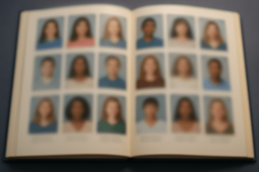 A blurry image of a yearbook.