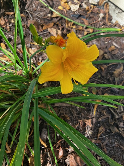 I pulled into my driveway at dusk, and in late September, I noticed a single daylily in bloom. I have about ten daylily plants, and almost all of them flower in June, with a few lingering into July. But there, in a row of green with no blossoms except one, was a lone latecomer — a bright flower opening in autumn.