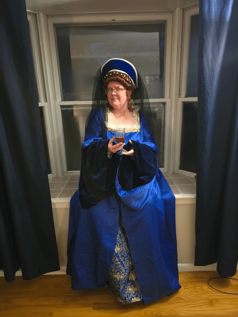 As for me, I dressed as Elizabeth I. She reigned for the same number of years as my new age.