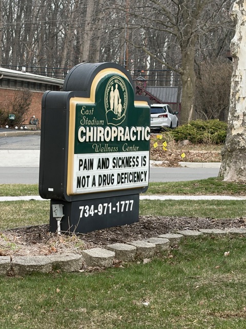 When I ride my bike (and it’s been warm enough to ride my bike!) I often cycle past a chiropractic center. More than once, I’ve noticed messages on their marquee that are rather anti-medication. And every time, I get very snarky inside.