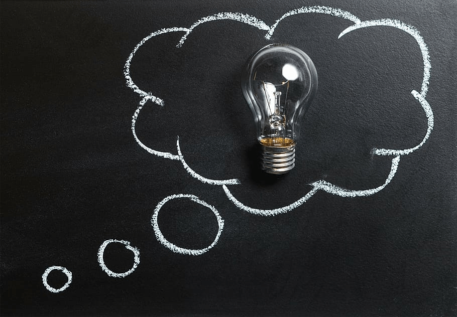 A thought bubble with a lightbulb inside. Public domain image.